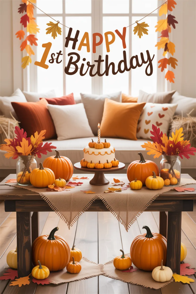 I planned and studied a “Little Pumpkin” first birthday theme and broke it down into a simple, practical setup that works for real parents. This theme focuses on soft fall colors, pumpkin décor, themed food, a cute cake, and easy activities that keep guests engaged without stress.